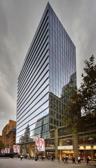 This same thoughtful application of light and glass are evident in the interstitial spaces that connect the tower with the podium at its base, which incorporate glass vitrines and cast glass columns to activate the public realm at street level. The interlocking connection between the tower's shaft and podium draws on Sydney’s historic architectural traditions, while enlivening the space with an infusion of light and materiality. The design activates the podium as a reconfigured civic space that seamlessly enhances both the tower and the surrounding urban landscape.