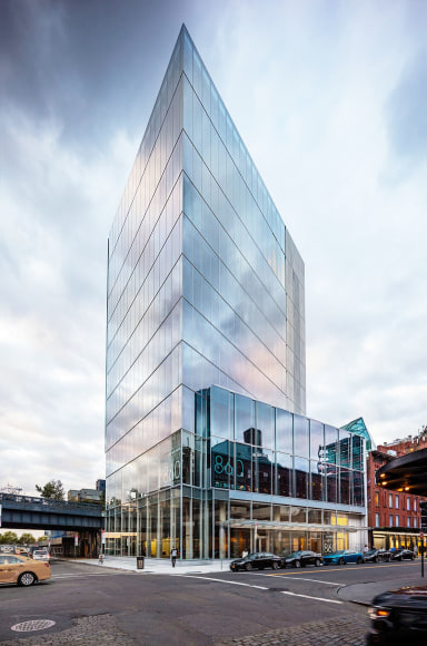 Adjacent to the High Line on a prominent corner within the Meatpacking District, 860 Washington is a mixed-use building comprising two levels of retail and eight levels of office space. The building’s shift in geometry responds to the High Line as it diagonally straddles the standardized grid of the neighborhood’s cross streets.