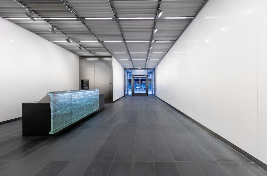 Inside and out, the building responds to and articulates light and views while the building’s structural features interpret the industrial character of the Meatpacking District with a contemporary aesthetic drawn from the minimalist material palette of glass, exposed concrete, and finely detailed metal.