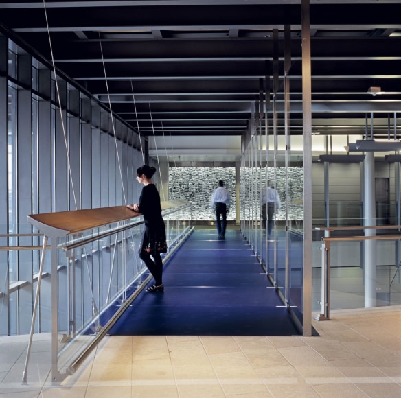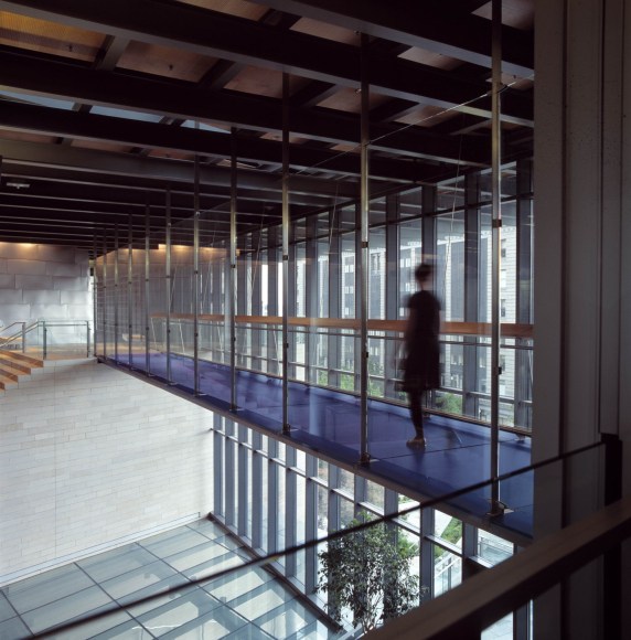 The new Seattle City Hall occupies an extraordinary site that affords views out over Puget Sound and the Olympic Mountains beyond. In order to take advantage of, and to reinforce the notion, of residing above the city, JCDA designed a glass bridge that essentially floats above and through the main lobby area. The bridge connects the new city council chambers to the city administrative office building and the mayor's office.