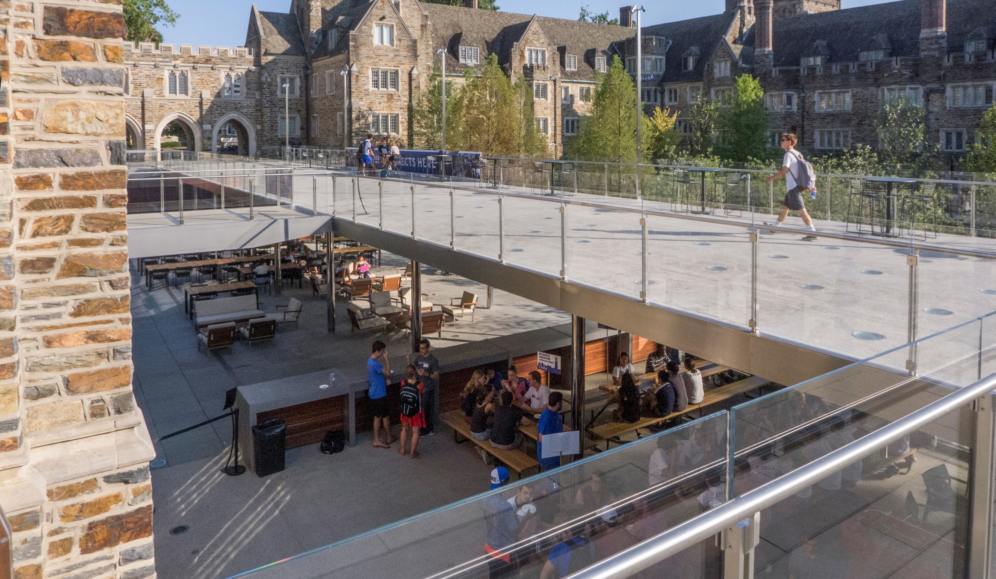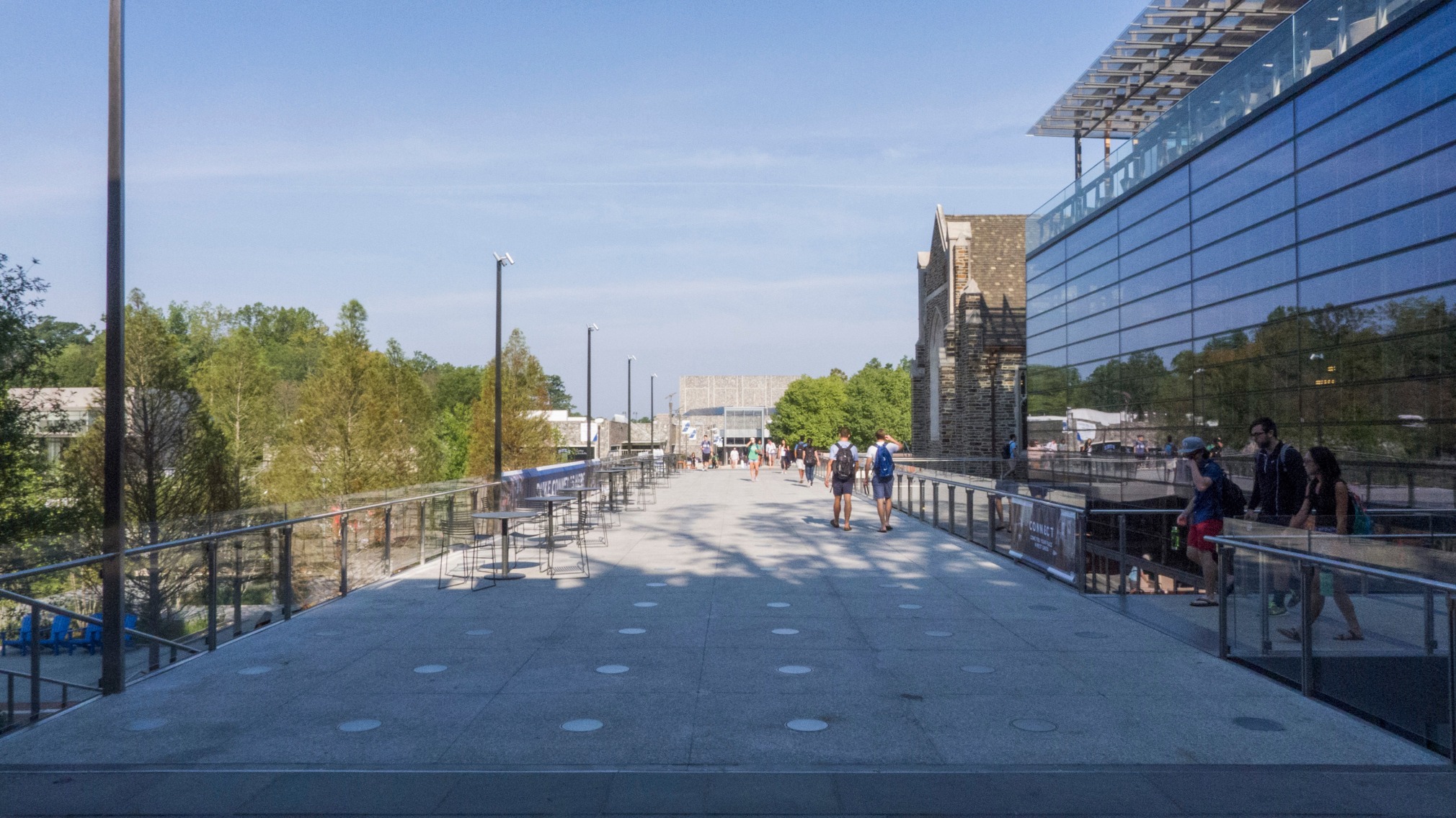 The Bridge / Pavilion embeds a sense of Duke’s forested grounds within each student’s social experience of the West Union District.