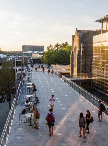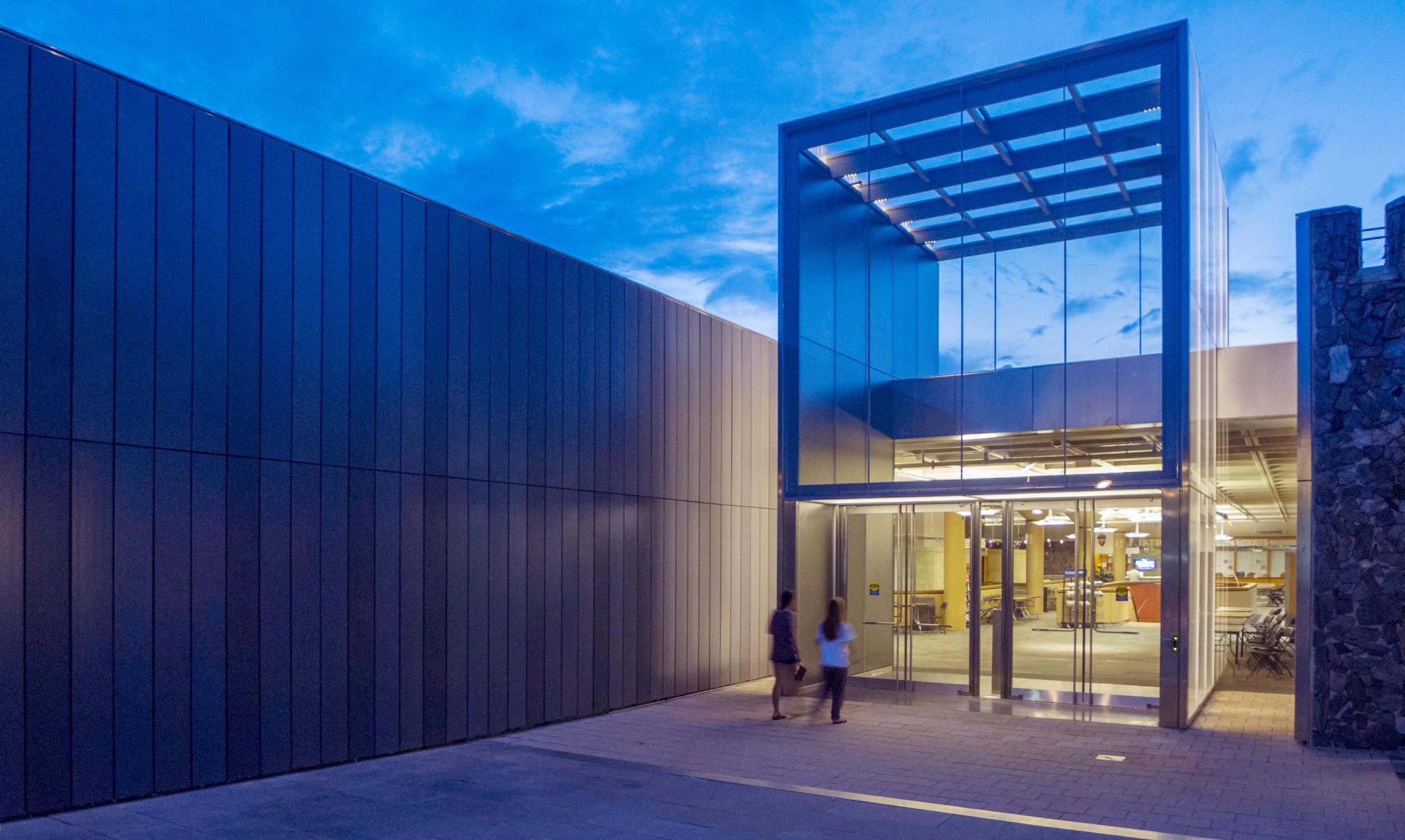 A volume of environmental light signals the student center’s openness and accessibility and acts as a beacon within the campus at night.