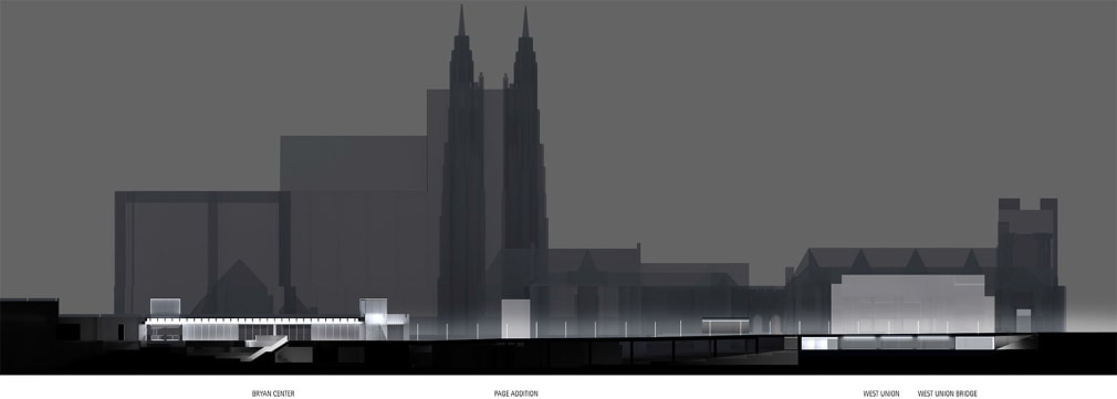The design concept for the Bryan Center Entry Additions draws on the planning work and the design principles established by the design team working to revitalize the West Campus.