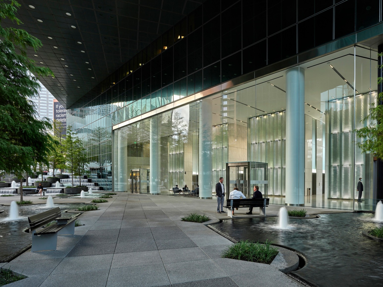 Creating an uncommon public space for Dallas, the re-imagined Public Spaces for Fountain Place complements and reinforces the original landmark design creating a seamless marriage between the abstract late modern geometry of the I.M. Pei Tower to the verdant limpid watery oasis of Dan Kiley’s Garden.