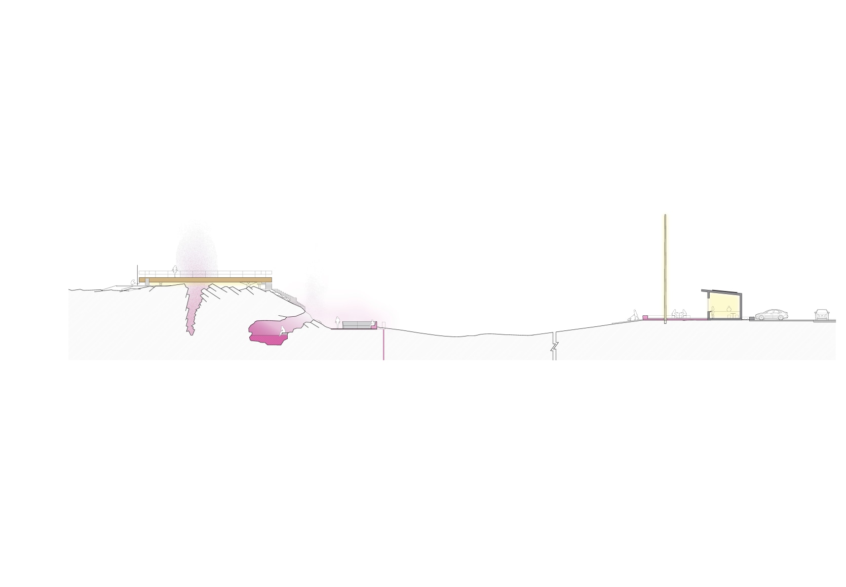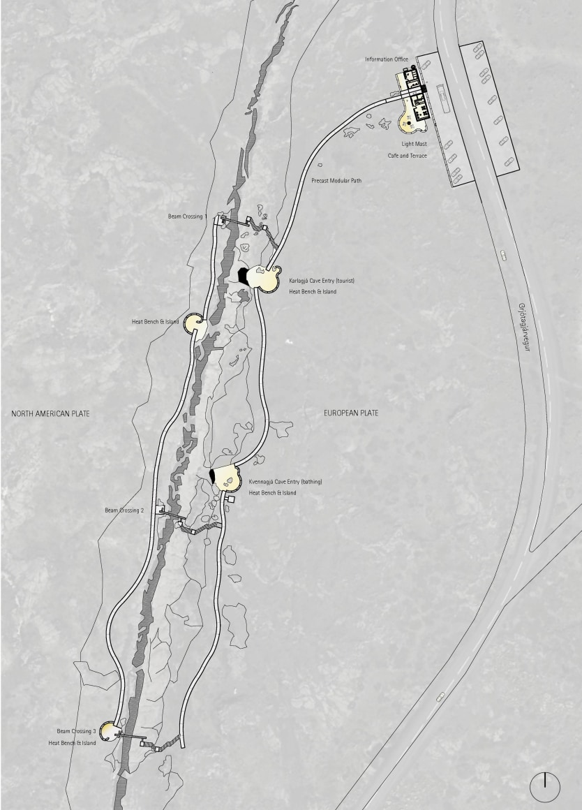 Our proposal defines a visit as a journey, a journey of multiple destinations “linked” by modest yet powerfully poetic architectural experiences which touch the senses. Using simple amenities and interventions scaled to the individual, the landscape is embraced by a delicate presence, complimenting this elemental natural landscape.