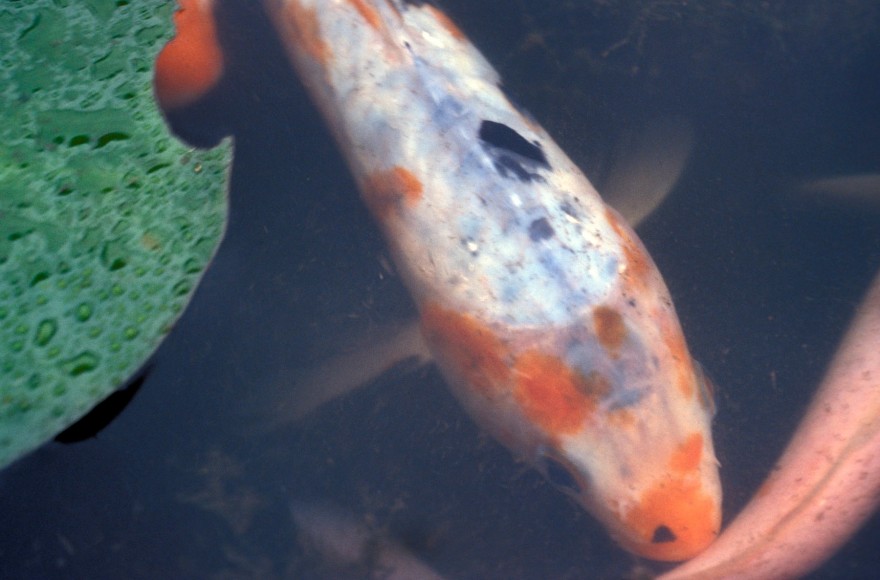 Koi was filmed in 1979–1980 for an installation that features natural elements controlled and transformed by the human idea of nature. Within the water elements of Japanese gardens, the aesthetic control is brought into relief by the koi, a type of carp bred for its dramatically colored and abstract reflections. The surface of the koi pond was filmed from above using a fixed camera recording a fixed frame over an extended time, capturing the movement of the fish as they swim below the surface of the pond.