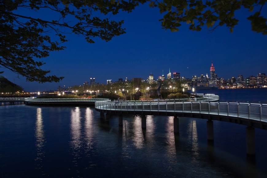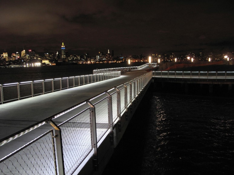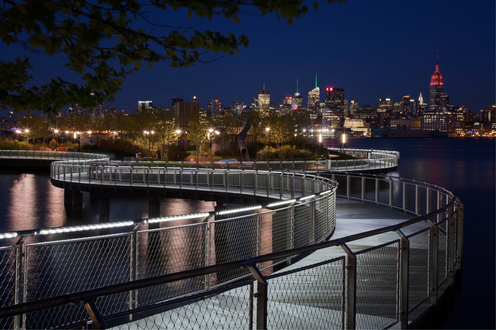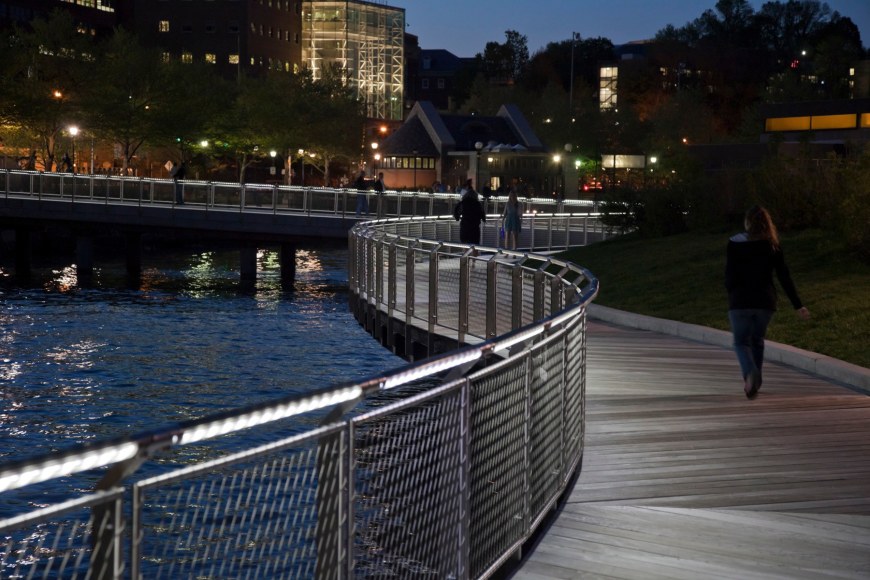 Transferring technology used in the industrial filtration industry, JCDA’s railing outlines the pier’s curvilinear shape with a delicate threshold of light.