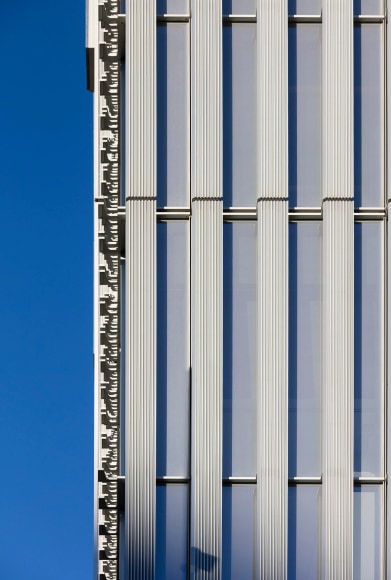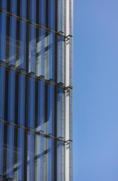 In keeping with the simplicity and elegance of the planning and the powerful iconic image of the luminous cubic massing of the design, JCDA worked closely with Thomas Phifer and Partners to design an envelope that maintains the presence of the sky within the city, embodying within its depth a powerful reading of the light and its mutability while maintaining views out and protecting the building from solar gain.