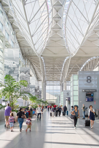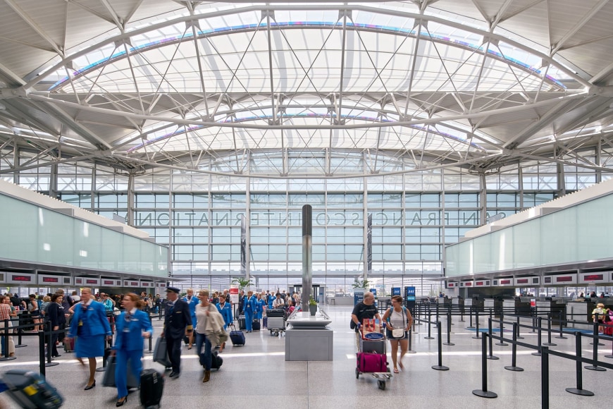 The curving, aerodynamic volumes of light create a heightened sense of the Bay Area's unique environment while also contributing significantly to this public space’s daylighting and thermal control.