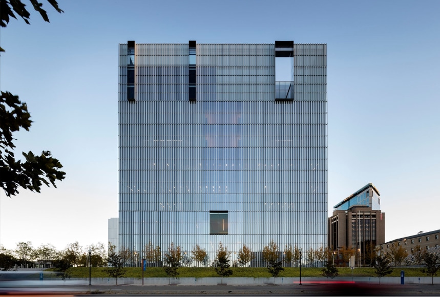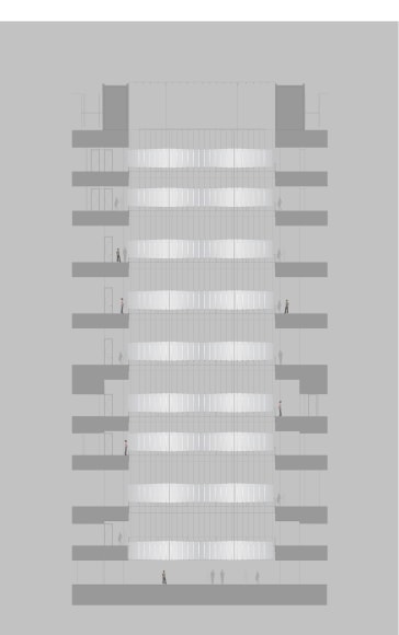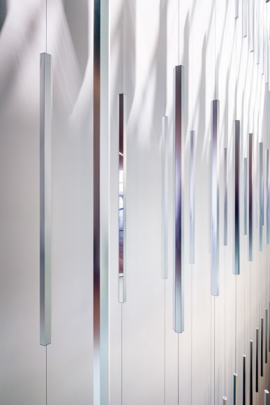 The artwork’s array of facetted reflections integrates Salt Lake’s environmental qualities into the buildings vertical circulation experience.