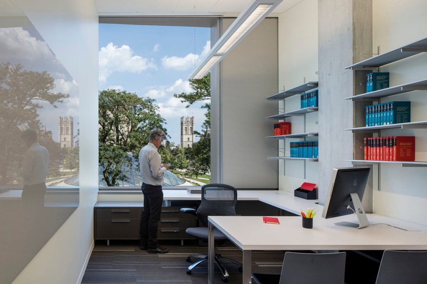 JCDA’s efforts were focused on bringing daylight in through the perimeter offices through the circulation corridors and public spaces and into the post doc offices and labs, as well as on the public spaces where the various departments might mix, leading to collaborative and innovative ideas and research. The design integrates light within the building’s thresholds and horizontal and vertical public circulation spaces, where it resonates with and informs students’ and researchers’ creativity, discovery, collaboration and exchange of ideas.
